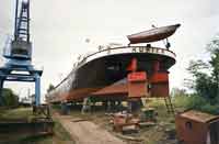 ein altes Schiff, einen Finow-Maß- Kahn. Dieser "Kahn" wurde 1920 gebaut, ist ca.42 Meter lang und wurde bis zum Verkauf an LiSA e.V. als Transportschiff für Kies, Steine etc. benutzt.